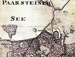 - ↑ Reinhard E. Fischer: Die Ortsnamen der Länder Brandenburg und Berlin. Band 13 der Brandenburgischen Historischen Studien im Auftrag der Brandenburgischen Historischen Kommission, be.bra wissenschaft verlag, Berlin-Brandenburg 2005, ISBN 3-937233-30-X, ISSN 1860-2436. Parstein, Parsteiner See S. 129. Dabei nennt Fischer für die Bezeichnung Parsteyn bereits das Jahr 1281. Der Hinweis auf das Landbuch Karls IV. 1375 findet sich mehrfach, unter anderem bei Eiszeitstraße.de