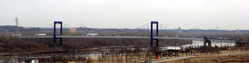 In den 1950er Jahren entstanden weitere Straßenbrücken über den Missouri in Kansas City, darunter ab 1952 auch die Paseo Bridge. Die von Jacob Karol entworfene Hängebrücke wurde von Howard, Needles, Tammen and Bergendoff (HNTB) flussabwärts von der Hannibal Bridge errichtet. Sie führte seit ihrer Fertigstellung im August 1954 die U.S. Highways 69 und 71 und war bis 1972 mautpflichtig. Mit dem Ausbau der Interstate Highways verliefen auch die Interstate 29 und 35 über die Brücke und die damit verbundene Zunahme des täglichen Verkehrsaufkommens von anfänglich 6.800 Fahrzeugen auf über 90.000 zu Beginn des 21. Jahrhunderts machte die Paseo Bridge zunehmend zu einem Engpass. Zwischenzeitliche Schließungen der Brücke wegen nötiger Reparaturarbeiten in den Jahren 2003 und 2005 verdeutlichten das Problem nochmals und Prognosen sahen eine weitere Steigerung des Verkehrsaufkommens auf 110.000 Fahrzeuge täglich bis zum Jahr 2030 voraus; ein Ausbau der alten Brücke war nur eingeschränkt möglich.[2][3]
