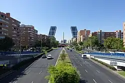 Ebenfalls im Norden durchquert die Straße einen der bedeutendsten Plätze in Madrid, die Plaza de Castilla (gesäumt von den Türmen der Puerta de Europa). An der Straße liegen der Ministerialkomplex Nuevos Ministerios, das Estadio Santiago Bernabéu, das Museo Nacional de Ciencias Naturales sowie die Finanz- und Einkaufszentren AZCA und links seit 2008 die Wolkenkratzergruppe Cuatro Torres Business Area (auf deren Gründen sich bis 2004 das ehemalige Trainingsgelände von Real Madrid befand).