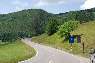 Passwangstrasse östlich von Beinwil, mit der Hohen Winde (1204 m) in der Bildmitte