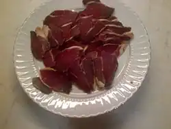 Pastırma[1] ist eine Fleischspezialität, die vor allem in den früher zum Osmanischen Reich gehörenden oder von ihm beeinflussten Ländern und in Transkaukasien verbreitet ist. Es handelt sich meist um stark gewürztes Rinder-Dörrfleisch, das als kalte Vorspeise dient. Früher war auch Kamelfleisch verbreitet.