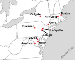 | Lafayette College | Easton, Pennsylvania | Leopards | 1826 | 1986 | privat | 2.382 |