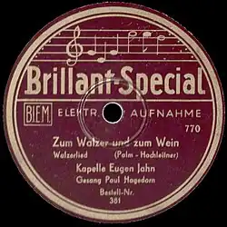 - Zum Walzer und zum Wein (Orchester Eugen Jahn; Gesang: Paul Hagedorn, 1939)