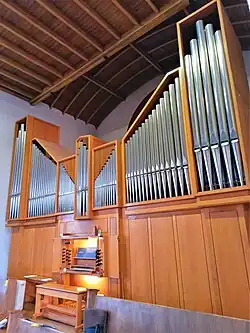 III/P | 12 (27) | Bis 2016 waren nur 12 von 27 geplanten Registern fertiggestellt (Brustwerk und Rückpositiv waren vakant). 2016 Erweiterung der Orgel und Vervollständigung der fehlenden Register durch Orgelbau Bosch (III/P/28). → Orgel |