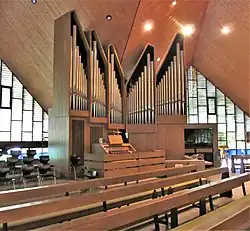 III/P | 40 | Umbau der 1953 gebauten Orgel. Umsetzung in das südliche Seitenschiff, neues Gehäuse von Dieter Oesterlen; 1984 überholt durch Karl Schuke Berliner Orgelbauwerkstatt |