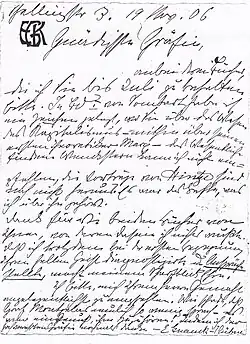 Brief von Elisabeth Gnauck-Kühne an die Gräfin, archiviert im Ida-Seele-Archiv