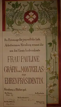 Pauline Gräfin von Montgelas (geboren als Pauline Mathilde Sophie Gräfin von Wimpffen; ausgesprochen mõʒəˈla; * 28. Februar 1874 in Rom; † 10. Mai 1961 in Rottach-Egern) war im Deutschen Katholischen Frauenbund tätig und setzte sich für Verbesserungen der Arbeitsbedingungen von Dienstmädchen, Heimarbeiterinnen und Kellnerinnen ein.