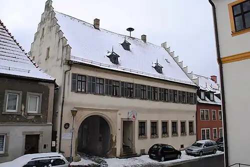 - ↑ Günter Garenfeld: Lange Tradition Mainbernheimer Gasthöfe. In: Jahrbuch des Landkreises Kitzingen 1981. Im Bannkreis des Schwanbergs. Kitzingen 1981. S. 254.