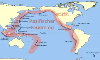 Am Pazifischen Feuerring, einem weitausgedehnten, um den Ozean verlaufenden Ring von aktiven Vulkanen, verbunden mit Tiefseerinnen, fanden einige der gewaltigsten Erdbeben des 20. und 21. Jahrhunderts statt, zum Beispiel 1960 das Große Chile-Erdbeben und in Japan 1923 das Große Kantō-Erdbeben. Eine weitere Gefahr sind Seebeben, welche meterhohe Tsunamis auslösen können, wie beispielsweise das Sumatra-Andamanen-Beben mit dem folgenden Tsunami am 26. Dezember 2004, wobei etwa 230.000 Menschen ums Leben kamen.