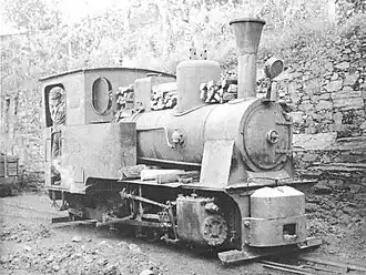 Pedemoura, mit Holz beheizte O&K-Lok Nr. 10808/1924 in Pedorido, 1968