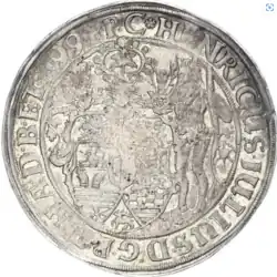 - Übersetzung: Heinrich Julius von Gottes Gnaden, postulierter Bischof zu Halberstadt, Herzog zu Braunschweig und Lüneburg. Die Zahl 99 ist das Prägejahr 1599.