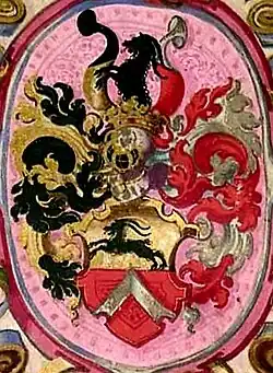 Das Wappen wurde der Familie bei ihrer Erhebung in den Adelsstand von Rudolf II. verliehen.