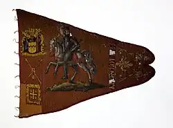 Das Pennon ist ein dreieckiger Wimpel zumeist aus Seide, der an einer Lanze angebracht wird.
