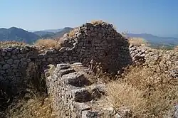 ![]() Blick von Akrokorinth auf die Burg Penteskouphi | ||