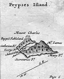Der Name der Insel bezieht sich auf den damaligen Staatssekretär im englischen Marineamt (Chief Secretary to the Admiralty) Samuel Pepys, der uns heute eher wegen seiner in einer verschlüsselten Kurzschrift verfassten Tagebücher bekannt ist, die nicht nur offizielle Angaben enthalten, sondern daneben – in der damaligen Zeit völlig unüblich – auch eigene Erlebnisse und persönliche Ansichten, die der heutigen historischen Forschung freimütige Hinweise zum Leben der gehobenen Stände überliefern.