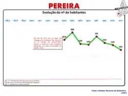 Pereira war Sitz einer gleichnamigen Gemeinde (Freguesia) im Kreis (Concelho) von Mirandela im Distrikt Bragança. Die Gemeinde hatte 187 Einwohner und eine Fläche von 7,25 km² (Stand 30. Juni 2011)[2].