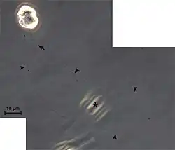 - ↑ Neumann, A. (2008). Feeding mechanism of the dinoflagellate Peridiniella danica. Master thesis, University of Rostock. (Volltext; PDF; 7,8 MB)