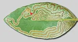 Die wechselständig am Zweig angeordneten Laubblätter sind in Blattstiel und -spreite gegliedert. Die kurz gestielten, kahlen Blätter riechen aromatisch, wenn sie zerrieben werden.[2] Die einfache Blattspreite ist bei einer Länge von 7 bis 15 Zentimetern (3 bis 6 in) eiförmig bis verkehrt-eiförmig oder lanzettlich.[3] Die ganzrandigen und rundspitzigen oder stumpfen, dickledrigen Blattspreiten sind oberseits dunkel- und unterseits hellgrün, glauk. Der Blattrand ist meist leicht umgebogen, die Basis ist spitz bis keilförmig. Die Nebenblätter fehlen.