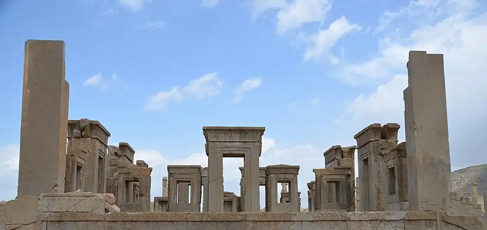 Die älteste Residenzstadt der Achämeniden war Pasargadae. Wichtige Bauten der 559–525 v. Chr. ausgebauten Stadt sind die monumentalen Tore, die Apadana, sowie der heilige Bezirk mit dem Feuertempel und dem Grabmal von Kyros II.[3] In Pasargadae wurde auch die früheste rekonstruierbare persische Gartenanlage entdeckt, deren Gestaltungsprinzipien die Architektur der gesamten folgenden Zeit, insbesondere die Islamische Architektur, prägen sollte.