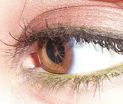 Als Persistierende Pupillarmembran, lateinisch Membrana pupillaris persistens, wird das Fortbestehen einer Membran aus der embryonalen Entwicklung im Bereich der Pupille bezeichnet.[1] Bei dieser recht häufigen angeborenen Erkrankung bleiben nach der Geburt Reste eines fetalen Gefäßnetzes mit feinen Fäden bestehen, die normalerweise noch in den ersten Monaten nach der Geburt vor dem Sehloch zurückgebildet werden können.[2][3]