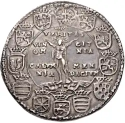 Eine besondere Vorliebe für emblematische Darstellungen zeigt in einer Serie von Talern Heinrich Julius zu Braunschweig und Lüneburg, Fürst von Braunschweig-Wolfenbüttel. Im Münzbild des Wahrheitstalers ist die Wahrheit nackt zu sehen und steht mit den Füßen auf der Verleumdung und der Lüge. Die Inschrift im Feld bestätigt das: VERITAS / VIN – CIT / OM – NIA / CALVMNIA / MENDACIUM (Die Wahrheit besiegt alle Verleumdung und Lüge). Die Taler mit symbolischen Darstellungen dienten dem Herzog in den Auseinandersetzungen mit einigen adligen Familien seines Landes, ebenso wie seine Mückentaler, zur Propaganda.[1]