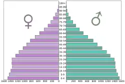 Peru hatte 2023 34,4 Millionen Einwohner.[14] Das jährliche Bevölkerungswachstum betrug + 0,9 %. Zum Bevölkerungswachstum trug ein Geburtenüberschuss (Geburtenziffer: 17,4 pro 1000 Einwohner[15] vs. Sterbeziffer: 7,5 pro 1000 Einwohner[16]) bei. Die Anzahl der Geburten pro Frau lag 2022 statistisch bei 2,2, die der Region Lateinamerika und die Karibik betrug 1,8.[17] Die Lebenserwartung der Einwohner Perus ab der Geburt lag 2022 bei 73,4 Jahren[18]. Der Median des Alters der Bevölkerung lag im Jahr 2021 bei 28,2 Jahren.[19] Im Jahr 2023 waren 25,7 Prozent der Bevölkerung unter 15 Jahre,[20] während der Anteil der über 64-Jährigen 8,6 Prozent der Bevölkerung betrug.[21]