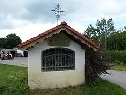 - Erneuert 1839 durch Michael Zink Schmiedmeister zu Ehren des heiligen Rochus u. der heiligen unbefleckten Empfängnis Maria. Wieder erneuert 1894 durch Frz. Josef Zink Schmiedmeister. Wieder erneuert 1929 durch Josef Heumoos Schmiedmeister.