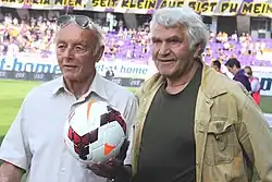 - ↑ Peter Linden, Karl H. Schwind: 100 Jahre! Die Highlights des österreichischen Fussballs: Triumphe, Tränen, Schmähs. 2004, ISBN 3-7142-0009-6.