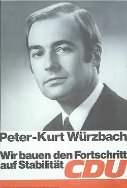 Peter Kurt Würzbach (* 15. Dezember 1937 in Göttingen) ist ein deutscher Politiker (CDU) und ehemaliger Offizier.[1] Er war von 1982 bis 1988 Parlamentarischer Staatssekretär beim Bundesminister der Verteidigung.