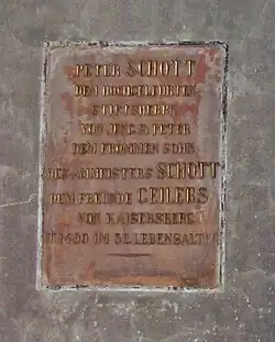 - Gustav Carl Knod: Schott, Peter. In: Allgemeine Deutsche Biographie (ADB). Band 32, Duncker & Humblot, Leipzig 1891, S. 406 f.