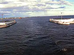 Der Petersburger Damm (russisch Комплекс защитных сооружений Санкт-Петербурга от наводнений, Komplex saschtschitnych sooruscheni Sankt-Peterburga ot nawodneni) ist ein Hochwasserschutzdamm, der quer durch die Newabucht gebaut wurde, um die russische Stadt Sankt Petersburg vor Überschwemmungen zu schützen. Er führt von Malaja Ischora (Малая Ижора) im Süden über den westlichen Teil der Insel Kotlin, auf der sich die Stadt Kronstadt befindet, bis ins nördlich gelegene Sestrorezk (Сестрорецк). Über das Bauwerk verläuft eine Autobahn als Teil des Autobahnrings um St. Petersburg,[1] diese verläuft bei den Schiffsdurchfahrten als Tunnel. Der südliche ist mit etwa 1,2 km Länge der längste untermeerische Tunnel Russlands.