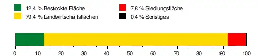 Es besteht zu 12,4 % aus bestockter Fläche, zu 79,4 % aus Landwirtschaftsfläche und zu 7,8 % aus Siedlungsfläche.