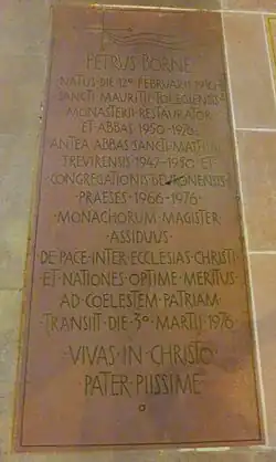 Als Johannes Borne geboren, trat er nach dem Abitur 1929 in die Benediktinerabtei St. Matthias in Trier ein, wo er den Ordensnamen Petrus annahm. Er wurde 1936 zum Priester geweiht. Am Päpstlichen Athenaeum Sant’Anselmo machte er ein Aufbaustudium der Philosophie, das er mit der Promotionsarbeit De Ente Materiali et Spirituali sub Respectu Extensionis et Inextensionis abschloss. An der gleichen Hochschule lehrte er in der Folge bis 1947 dieses Fach.