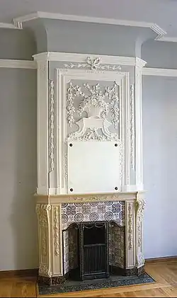 - Ende 18. Jh.: Kaminstück im Chambre Romaine, Schloss Borgharen, Maastricht, nach Mathias Soiron Empireskizzen ausgeführt