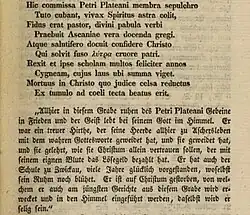 - Ernst Emil Fabian: M. Petrus Plateanus, Rector der Zwickauer Schule von 1535 bis 1546; Zwickauer Gymnasialprogramm von 1878.