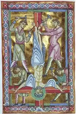 Die Petrusakten oder Acta Petri (ActPetr) sind eine apokryphe, pseudepigraphe und nichtkanonische Apostelgeschichte aus dem 2. Jahrhundert mit einer komplexen Überlieferungsgeschichte. Sie haben unter dem Titel altgriechisch Πράξεις Πέτρου Praxeis Petrou, deutsch ‚Taten des Petrus‘ vor allem in den Ostkirchen weite Verbreitung gefunden.[1] Vom gesamten Werk existieren nur noch Bruchstücke. Von dem ursprünglich griechischen Werk gibt es umfangreichere lateinische Fassungen und Teile in einer koptischen Version. Der Schlussteil wurde später als Passio Petri zu einem eigenständigen Werk mit eigener Überlieferung.