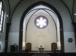 Über der Stelle der zugemauerten Rosette befand sich von 1955 bis Juli 2006 das schlichte Holzkreuz. Ein zweckgebundenes Vermächtnis ermöglichte, das Rosettenfenster wiederherzustellen. Da die neue Rosette eine große Fläche der Altarwand einnimmt, wurde der gesamte Altarraum mit Kreuz und Altar neu konzipiert.