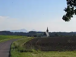 Die ursprünglich spätgotische Kirche mit ihrem teilweise romanischen Turm und Netzgewölbe ist Johannes dem Täufer geweiht. Sie wurde erstmals um die Wende des 15. Jahrhunderts erwähnt. Die erste gotische Einrichtung ist verschwunden, von der späteren Barockeinrichtung stehen heute nur noch drei Statuen: der hl. Rupertus mit dem Salzfass, der hl. Virgilius mit dem Salzburger Dom, und die hl. Maria. Im 19. Jahrhundert wurde die Kirche neugotisch ausgestattet.