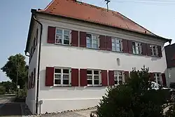 Der zweigeschossige Walmdachbau wurde von Joseph Dossenberger errichtet. Das Gebäude besitzt fünf zu drei Fensterachsen.