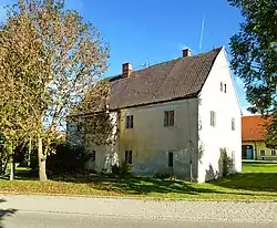 Das Pfarrhaus in Ebertshausen, einem Gemeindeteil von Odelzhausen im oberbayerischen Landkreis Dachau, ist ein geschütztes Baudenkmal.