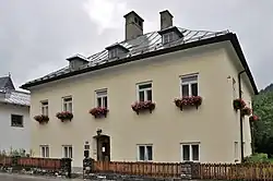 Der im Kern barocke, zweigeschoßige und fünfachsige Bau besitzt im Innern zum Teil einfache Stuckleisten.