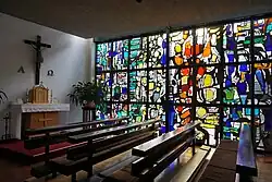 Die Kirche steht auf einem Schuttkegel der Ötztaler Ache. Erbaut wurde die Kirche von 1962 bis 1964 nach den Plänen der Architekten Sepp Salzburger und Wilhelm Adamer. Die Einrichtungen Ambo, Tabernakel und Taufbecken wurden in Beton nach Entwürfen des Künstlers Herbert Barthel[1] gebildet. Die Betonglasfenster schuf 1964 die Glasmalerin Inge Höck. Die Kreuzwegstationen sind Werke des Malers H. Stilhard.