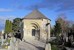 Der romanische Karner südöstlich der Pfarrkirche wurde um Anfang/Mitte des 13. Jahrhunderts errichtet und im 17./18. Jahrhundert dem hl. Leonhard geweiht. Der Rundbau mit Kegeldach hat eine halbkreisförmige Apsis und im Westen einen Portalvorbau mit fünffach gestuftem Trichterportal.[1] Das Untergeschoß des Karners wurde früher als Ossarium genutzt und das Obergeschoß als Kapelle.[13] Seit 1995 ist die Gemeinde Eigentümerin des Karners und nutzt ihn als Aufbahrungshalle.[14]