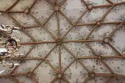Über dem dreijochigen Langhaus erhebt sich ein spätgotisches Sternrippengewölbe. Das Langhaus wird durch zwei achteckige Pfeiler in drei Schiffe unterteilt. Die beiden östlichen Joche sind mit einem einzigen Stern überwölbt, der früher aus einer Mittelstütze ruhte, die 1851 entfernt wurde. Das Gewölbe ist in den Zwickeln mit Blatt- und Blütenwerk vom Ende des 15. Jahrhunderts bemalt. Auf den unteren Schlusssteinen sind die Halbfiguren der zwölf Apostel, auf den kleineren quadratischen Schlusssteinen Wappen dargestellt. Die Rippen des Gewölbes enden in Konsolen bzw. in einem profilierten Wandpfeiler an der Südwand. Die dreiachsige spätgotische Orgelempore mit einer Rundbogenarkade im Mittelteil ist sternrippenunterwölbt. Die mechanische Schleiforgel wurde 1842 von Barthelmä Herbiger gefertigt.