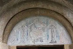 Im Gewölbe ist das Lamm Gottes und die Evangelistensymbole wiedergegeben. Am Gurtbogen zwischen Chorquadrat und Apsis sind in stilisierten Arkaden acht Prophetenbüsten dargestellt. In der Apsiswölbung thront ein Pantokrator in einer Mandorla, die von zwei Cherubim flankiert wird. Zwischen den Apsisfenstern sind Reste der zwölf Aposteln zu erkennen.