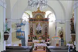 Im Kircheninneren ist vor allem der Hochaltar von Bedeutung, der Anfang des 19. Jahrhunderts geschaffen wurde. Es handelt sich um einen klassizistischen Doppelsäulenaltar mit schlichtem Aufsatz. Am Hochaltar stehen als Seitenfiguren die beiden Apostel Petrus (rechts mit seinem Attribut, einem Schlüssel) und Paulus (links mit dem Schwert). Das Hochaltarbild zeigt den Patron der Kirche, den heiligen Koloman in einer Pilgertracht mit kurzem gegürteten Rock und Pilgerstab. Zu seinen Füßen eine umgedrehte Krone. Über ihm schweben Putten, von denen einer einen Märtyrerkranz herabreicht. Neben dem Heiligen wird ein Geistlicher dargestellt, der durch Mitra und Bischofsstab als Bischof gekennzeichnet ist.