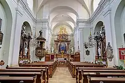 Das bemerkenswerte, teils vergoldete Orgelgehäuse von 1749 mit Rocailledekor und Engelsstatuen sowie der Figur der hl. Cäcilia auf dem Rückpositiv beinhaltet ein Werk von Adolf Donabaum aus 2000 mit 24 Registern.[1] Eine Glocke nennt Franz Zechenter 1717.