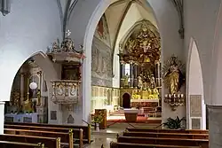 Außerdem gibt es noch zwei spätere Seitenaltäre an der Ostwand der Kirche (1834) – den Nikolausaltar mit Statuen der Hll Peter und Paul (links des Hauptaltars, 1. Hälfte 18. Jahrhundert), den Katharinenaltar mit Figuren der Hll Barbara und Margaretha (rechts des Hauptaltars, Ende 17. Jahrhundert), sowie den Arme Seelen-Altar an der Südwand mit einem Steinrelief (um 1600).