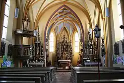 Am 4. August 1859 brannte die Kirche infolge eines Blitzschlages ab, sie wurde nach 1862 wieder aufgebaut und am 12. Oktober 1878 konsekriert.[1]