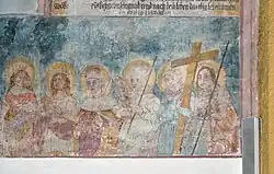 Die Wandmalereien zeigen am Triumphbogen das Jüngste Gericht aus der Mitte des 17. Jahrhunderts, im zweiten Joch der Nordwand Gottvater und die Heiligen Cristianus, Nikolaus, Maria Magdalena und Ursula, die Vierzehn Nothelfer und Maria mit Kind aus 1652, eine Inschrift nennt die Stifter Christian Unterberger und Nikolaus Pinter.
